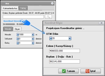 olması gereklidir. Ayarlar coğrafi koordinatlar tipinde ise "Koordinat